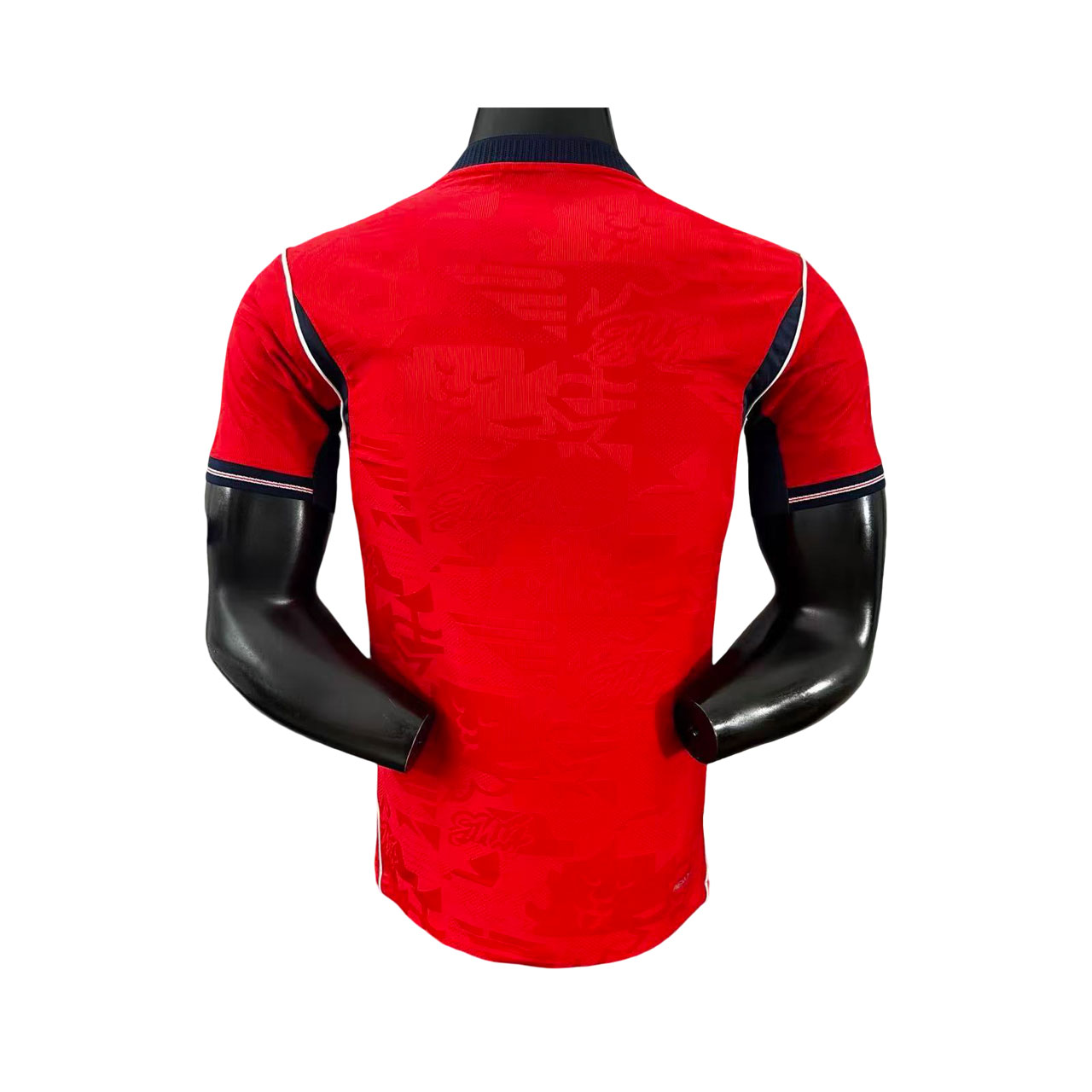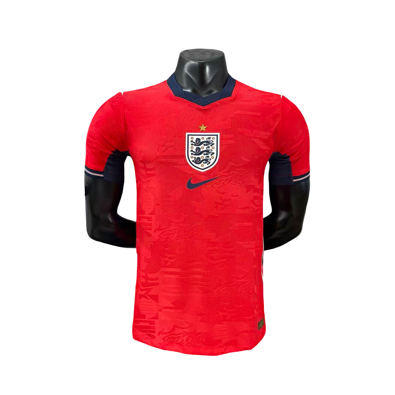 Najväčším dizajnovým prvkom je jemný žakárový vzor zapracovaný priamo do materiálu. Tento detail obsahuje motívy levov a hviezd, ktoré sú symbolicky spojené s identitou anglickej reprezentácie. Vzor je decentný, no pri bližšom pohľade dodáva dresu hĺbku a moderný charakter.