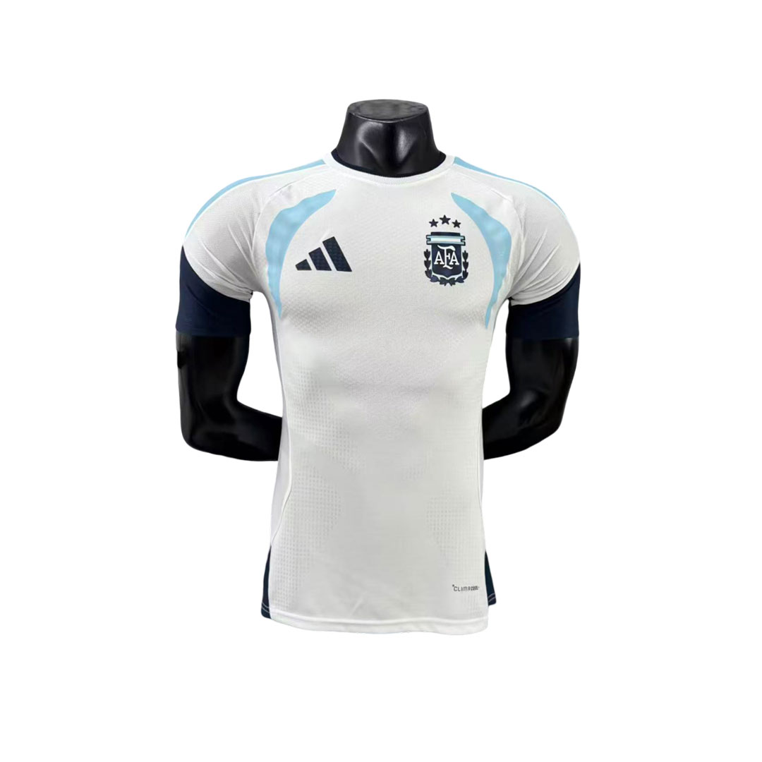 Čistý biely základ je doplnený jemnými svetlomodrými detailmi, ktoré odkazujú na tradičné farby argentínskeho futbalu. Odvážny, no pritom elegantný dizajn vyjadruje silnú futbalovú identitu Argentíny a dodáva dresu moderný, profesionálny vzhľad.
