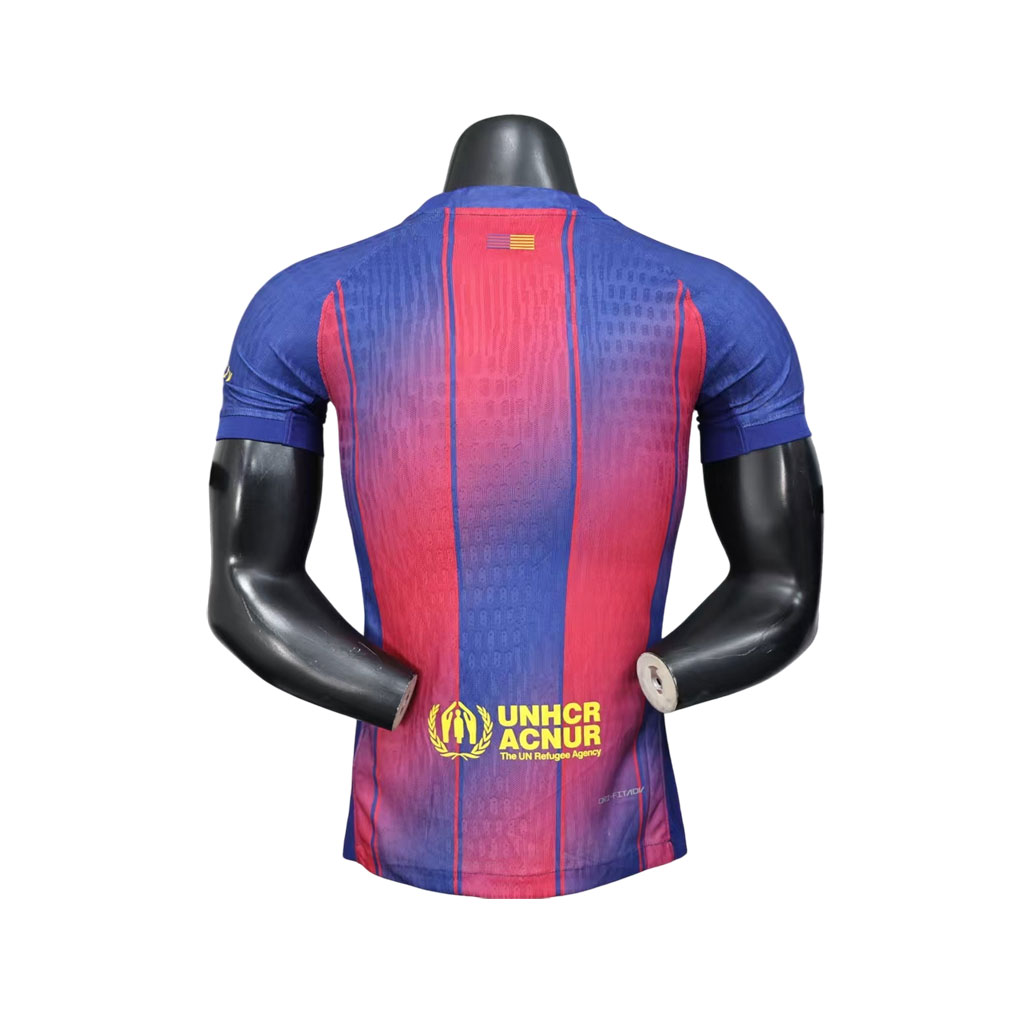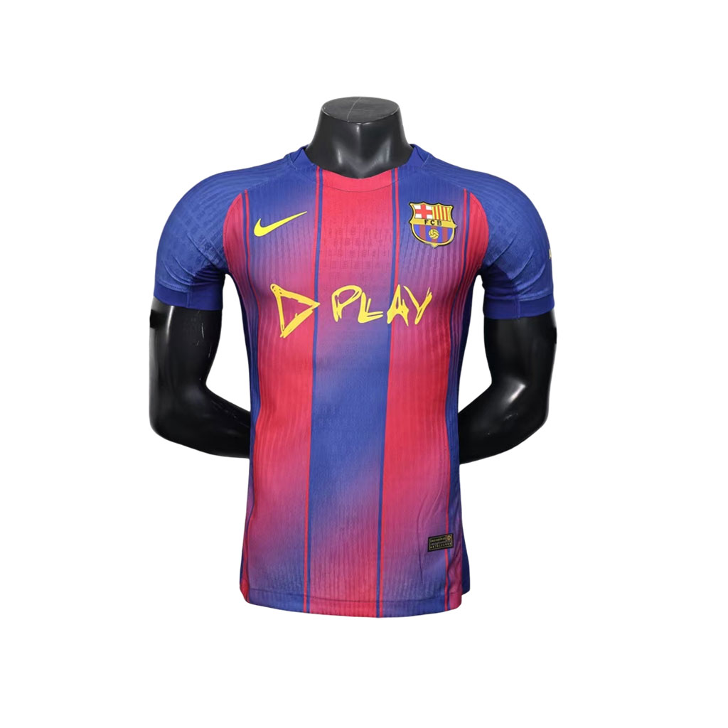 Nový FC Barcelona x Ed Sheeran 25/26 Domáci Dres spája svet futbalu a hudby v jedinečnej umeleckej spolupráci. Charakteristické modro-granátové pruhy Barcelony dostali moderný nádych vďaka ručne písanému nápisu „D-PLAY“, inšpirovanému Edovým štýlom a jeho víziou radosti z tvorenia.