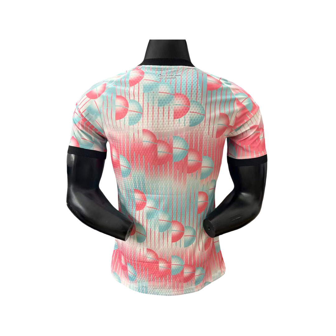 Na zadnej strane pod golierom sa nachádza slogan „Ceci n’est pas un maillot“ („Toto nie je dres“). Ide o jasnú referenciu na známe surrealistické dielo René Magritte, konkrétne obraz La trahison des images („Zrada obrazov“), na ktorom bol zobrazený fajkový motív s textom „Ceci n’est pas une pipe“. Tento detail je elegantnou poctou jednému z najznámejších belgických umelcov a dodáva dresu kultúrny rozmer.