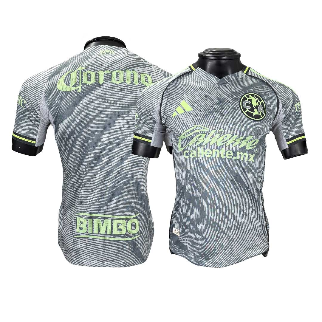 Základom dresu je sivá farba („Grey Two“) , ktorú Club América používa len výnimočne – naposledy sa sivý dres objavil v sezóne 2015-16. Práve preto pôsobí toto farebné prevedenie netradične a okamžite upúta pozornosť. Sivý základ dopĺňajú výrazné limetkovo zelené akcenty, viditeľné na logu, ramenách a detailoch dresu, ktoré mu dodávajú moderný a dynamický charakter.