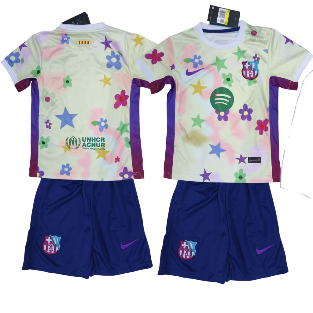 Dres NK FC Barcelona na sezónu 2025/26 prináša originálny dizajn s tradičnými červenými a tmavomodrými vertikálnymi pruhmi, ktoré sa smerom k stredu plynule prelínajú. Všetky logá sú v žltej farbe, čo dodáva dresu výrazný kontrast.