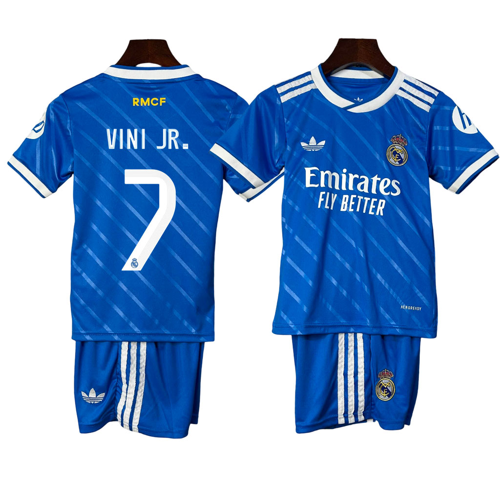 Tretí dres Real Madrid na sezónu 2025/26 prichádza v modrom prevedení s bielymi detailmi a logami. Dizajn dresu je inšpirovaný novými sedadlami na štadióne Santiago Bernabéu – vzor látky pripomína obrysy niektorých sedadiel.