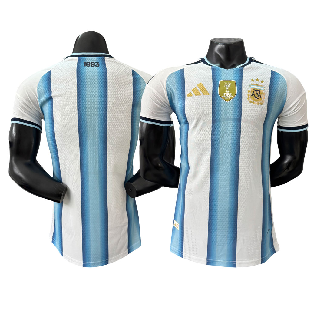 Nechýba ani modernizované 3-star logo, kde tretia hviezda – symbol posledného titulu majstra sveta – stojí o niečo vyššie ako dve staršie. Je to detail, ktorý okamžite pripomenie zlatú éru argentínskeho futbalu.