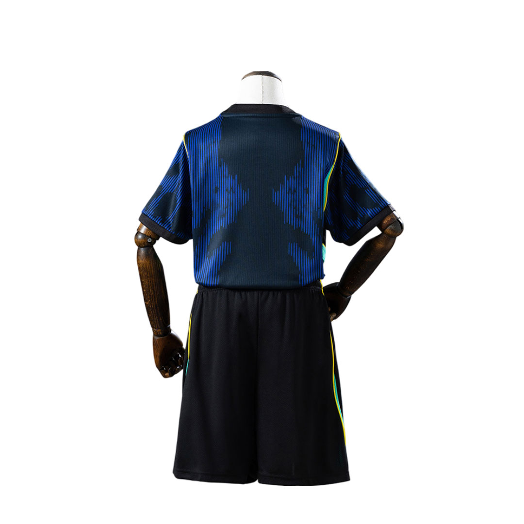 Hosťovský dres Brazília MS 2026 prichádza v výraznej kráľovsky modrej farbe, ktorú dopĺňajú čierne prvky. Výsledok je elegantný, no zároveň veľmi športový. Predná strana dresu je oživená ostrým, dynamickým vzorom, kde sa prelínajú rôzne tóny modrej. Motív pôsobí takmer abstraktne a dodáva dresu energiu aj pohyb.