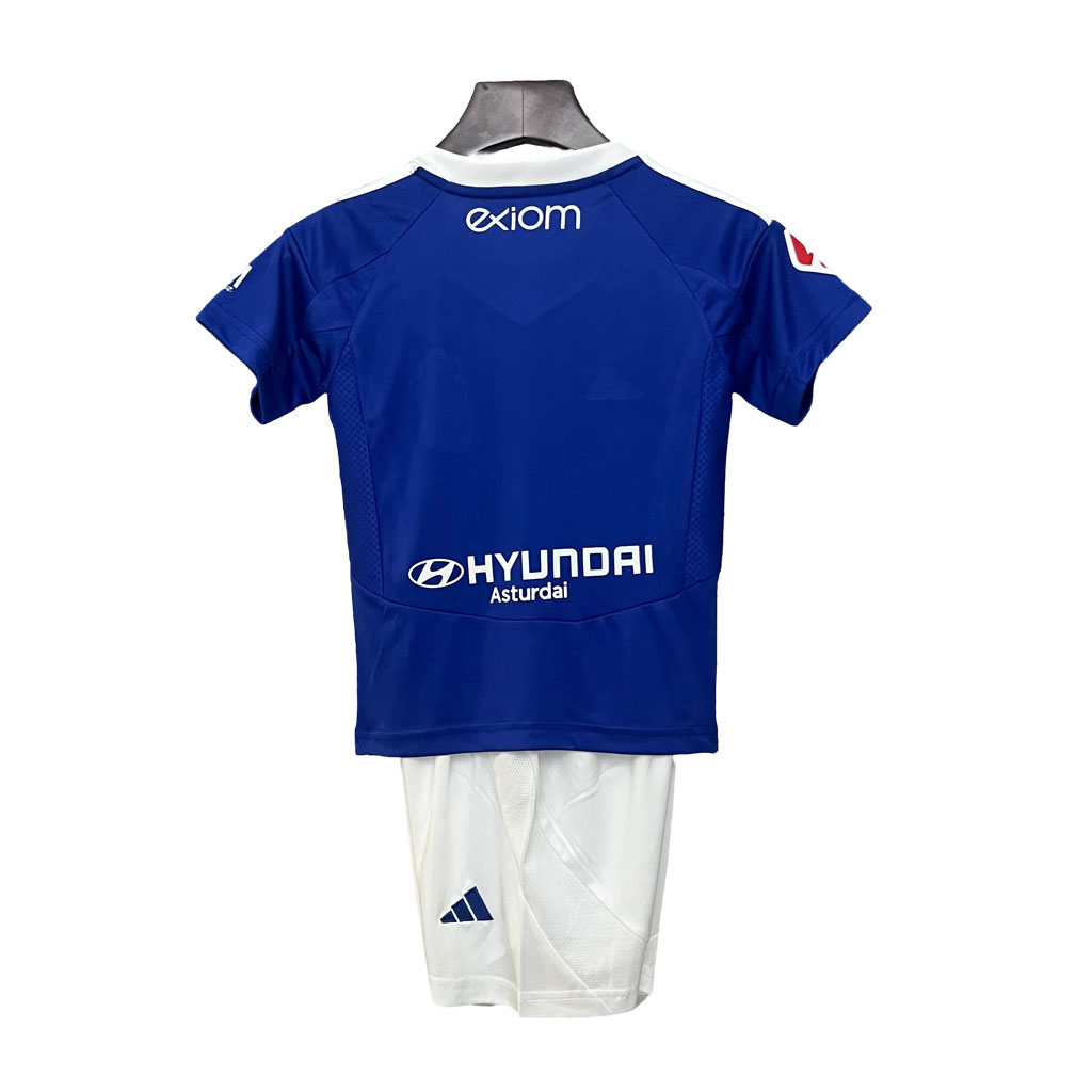Dětský Dres Real Oviedo 24/25 Domáci Krátky Rukáv a Šortky, Štandardný strih. Sada obsahuje tričko a šortky. Na zadnej strane možnosť potlače vlastného mena a čísla.