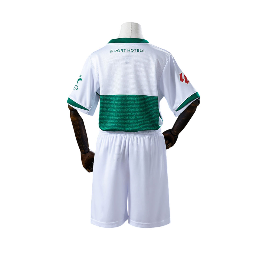 Domáci dres Elche 25/26 prináša čistý, moderný vzhľad, ktorý verne nadväzuje na tradičnú identitu klubu. Klasická biela je doplnená výrazným zeleným pruhom a jemnými detailmi, ktoré dodávajú dresu elegantný, no zároveň športový charakter.