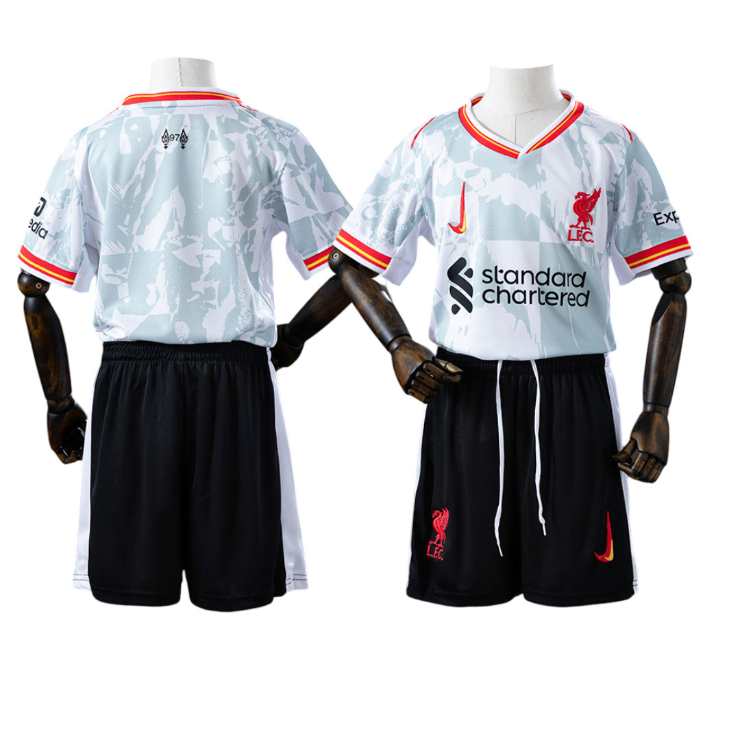 Hosťovský dres Liverpool od Aidas na sezónu 2025/26 je ladený najmä do odtieňa smotanovej bielej, ktorú značka oficiálne nazýva „Wonder White“. Elegantnú svetlú základnú farbu dopĺňajú čierne detaily a pravdepodobne aj jemné akcenty červenej.