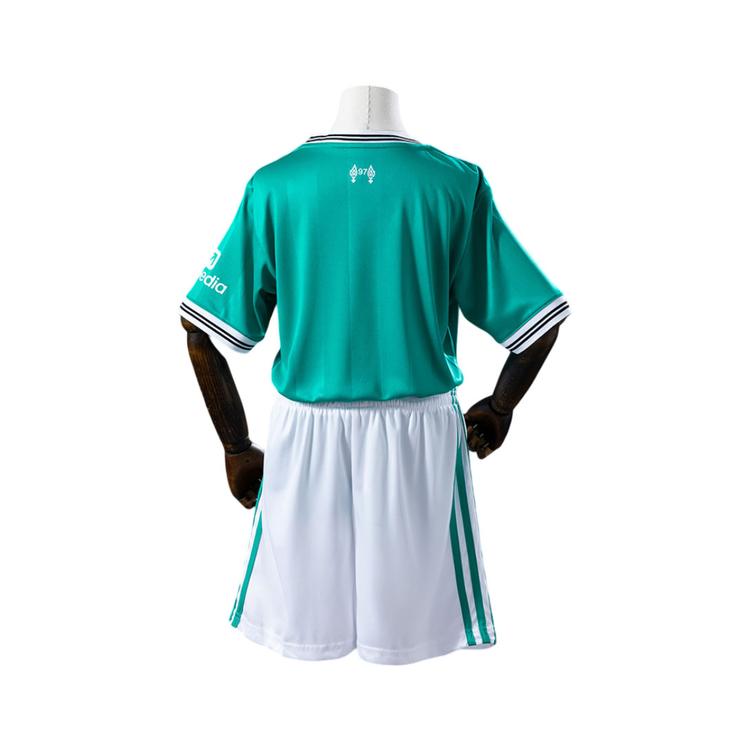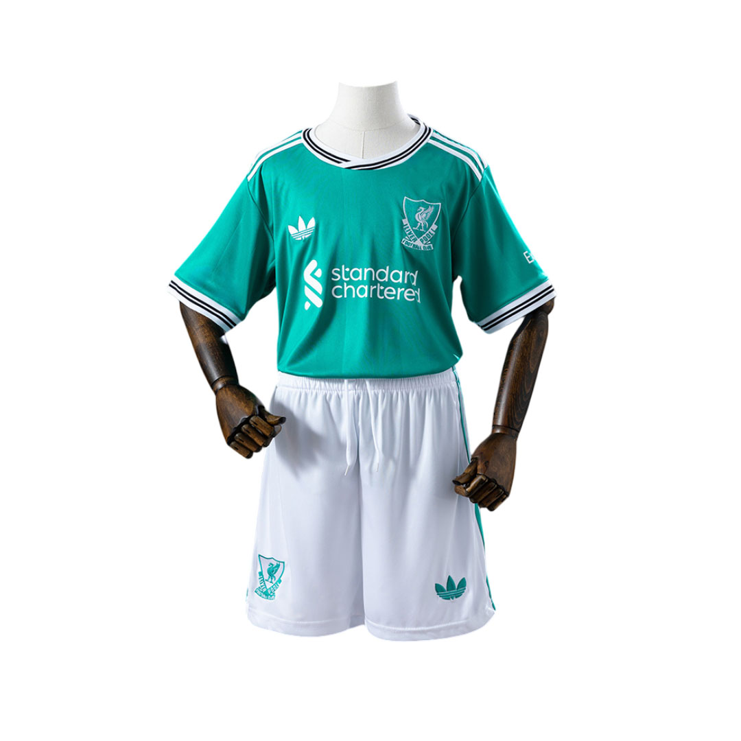 Liverpool 2025-26 tretí dres je v odtieni mentolovo-zelenej farby, ktorá nesie oficiálny názov Sea Green . Odtieň je veľmi podobný legendárnej farbe EQT Green. Oficiálna farebná kombinácia dresu je ea Green/White.