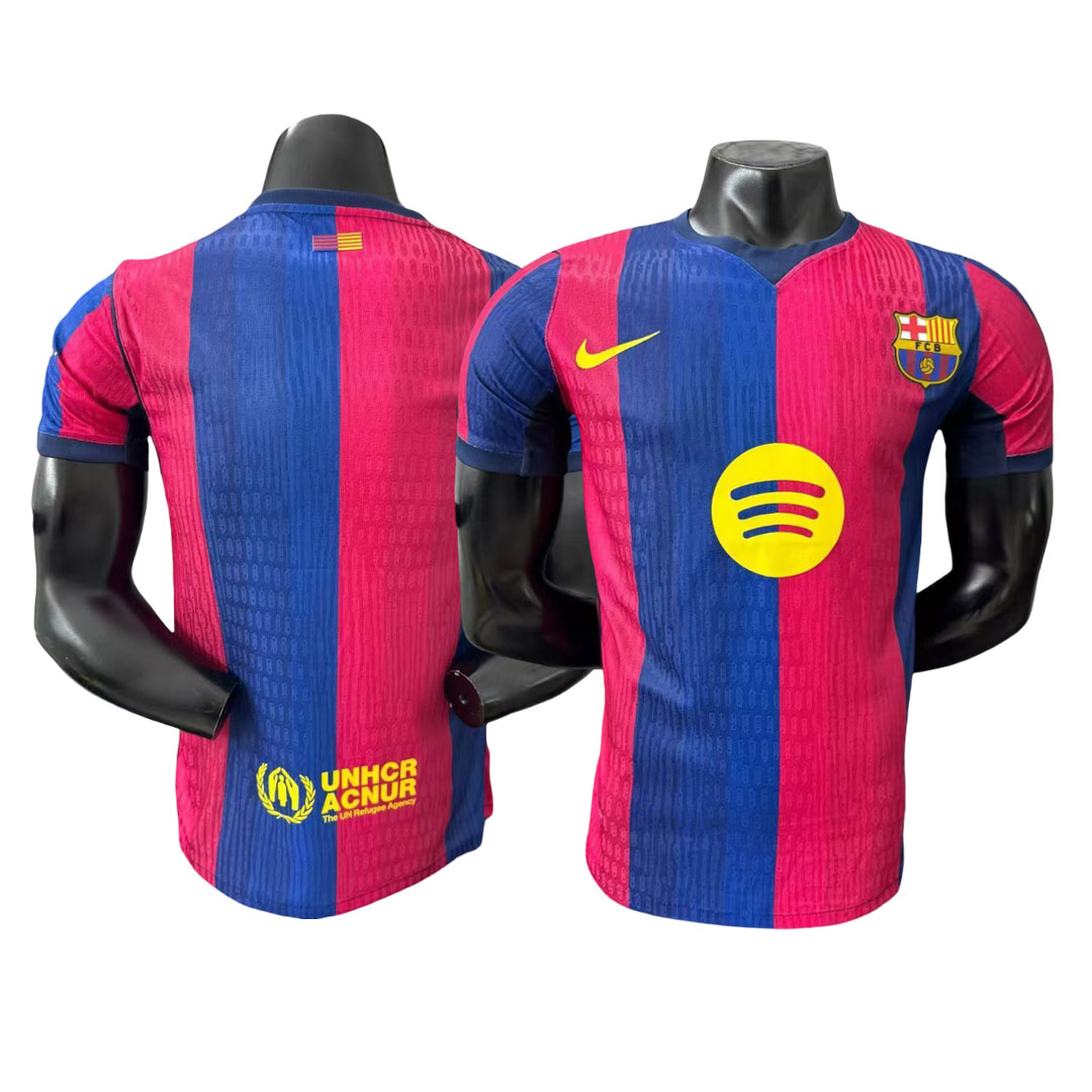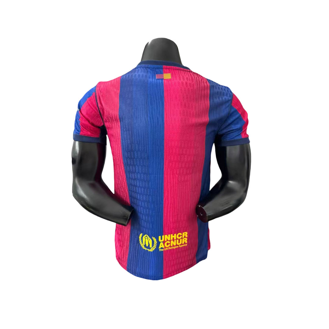 Domáci dres FC Barcelona 2026-2027 prináša doteraz najbohatšiu farebnú paletu v histórii domácich dresov klubu. Tradičné pruhy blaugrana sú tentoraz spracované v troch rôznych odtieňoch červenej a troch odtieňoch modrej, čím vzniká výrazný prechodový efekt, aký sa na domácom drese Barcelony ešte neobjavil.