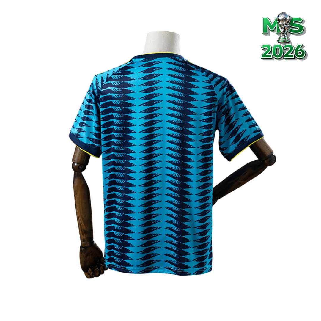 Hosťovský dres Colombia MS 2026 prichádza v elegantnom tmavomodrom prevedení, ktoré dopĺňa jemný vzor v o niečo tmavšom mentolovo-modrom odtieni. Celok pôsobí sviežo, moderne a zároveň veľmi ľahko kombinovateľne s akýmkoľvek fanúšikovským outfitom.