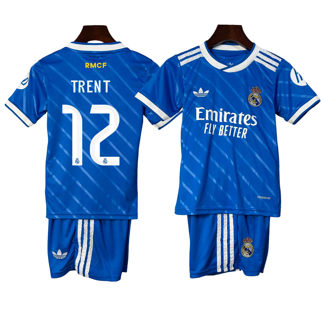 Tretí dres Real Madrid na sezónu 2025/26 prichádza v modrom prevedení s bielymi detailmi a logami. Dizajn dresu je inšpirovaný novými sedadlami na štadióne Santiago Bernabéu – vzor látky pripomína obrysy niektorých sedadiel.