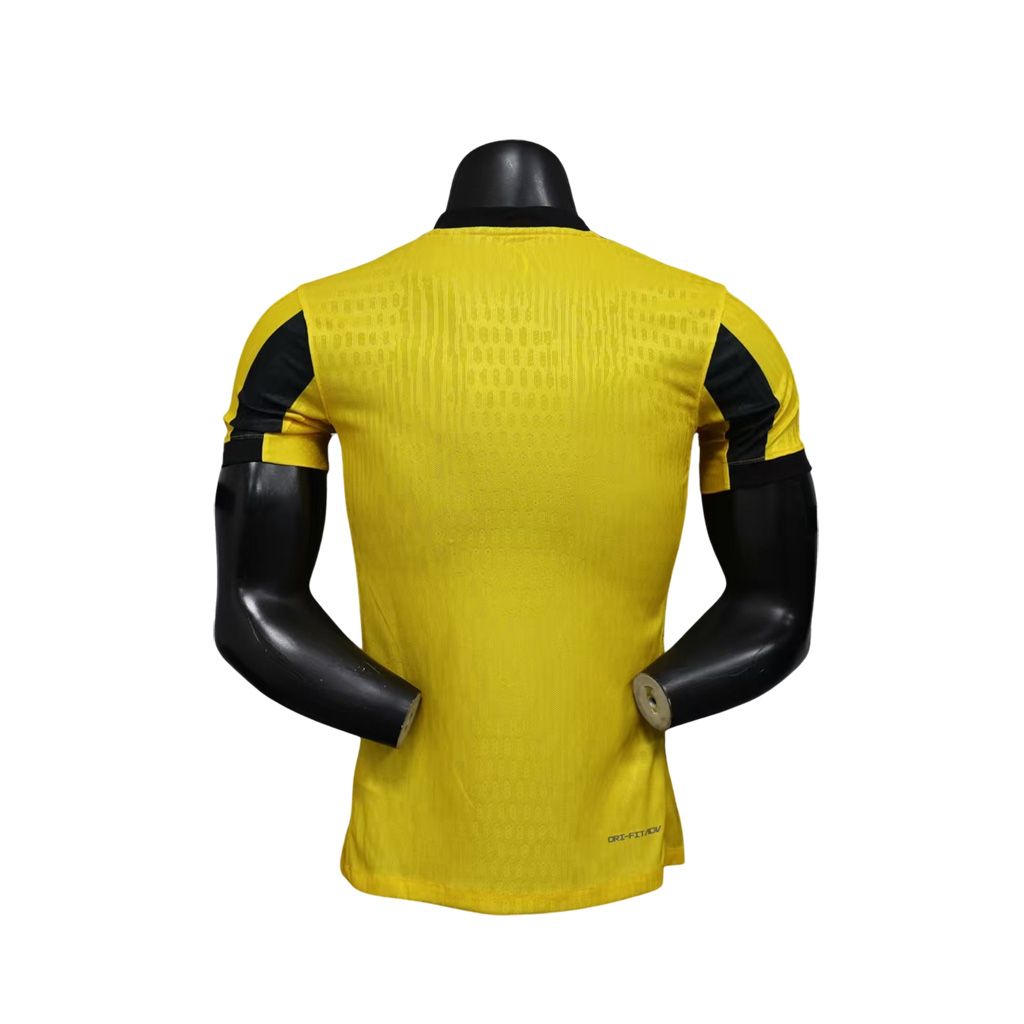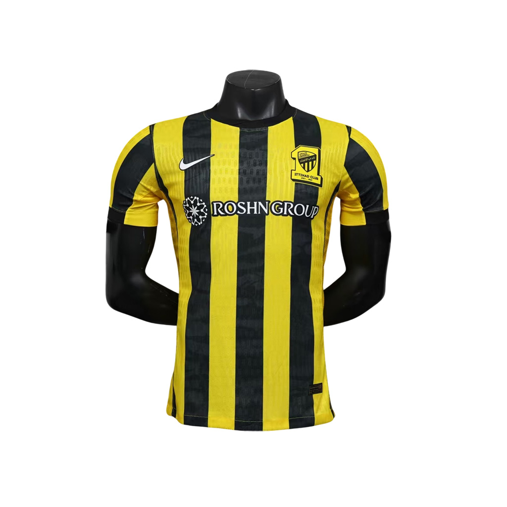 Al-Ittihad 25-26 prichádza v klasickom štýle s ikonickými čierno-žltými pruhmi, ktoré dopĺňa jemný vzor po celej ploche látky. Ide o najtradičnejší domáci dres klubu od sezóny 2022-23 – kombinácia, ktorá dokonale vystihuje charakter aj históriu tímu.