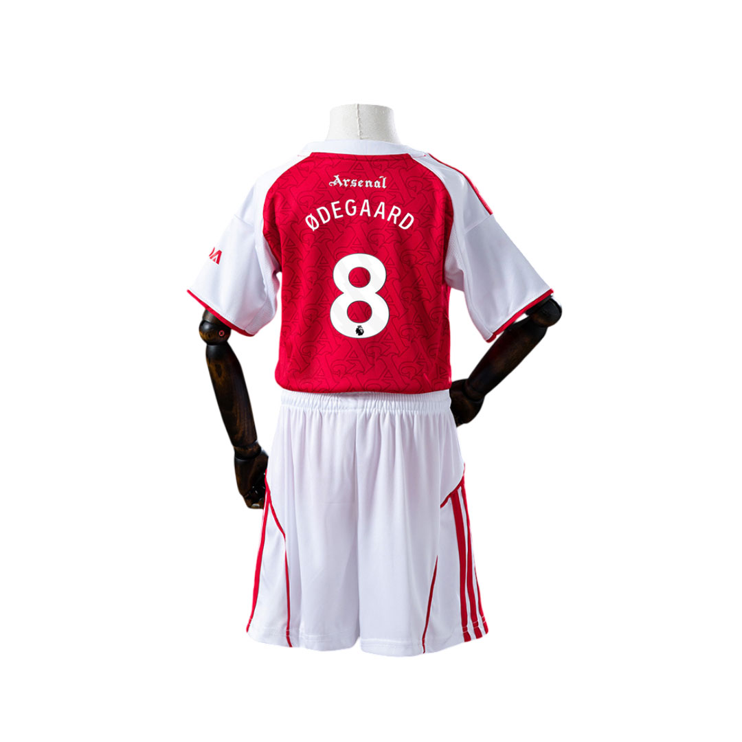 Tento detský set obsahuje dres a šortky s oficiálnou potlačou Ødegaard 8. Moderný vzhľad s ikonickými farbami Arsenalu dopĺňa elegantný dizajn a ľahká tkanina, ktorá zaručuje maximálne pohodlie. Ideálny pre deti, ktoré obdivujú Ødegaardovu presnosť, techniku a vodcovský duch na ihrisku.