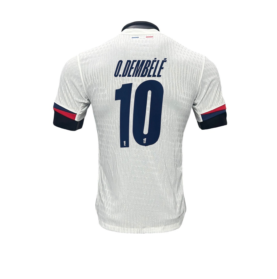 Rukávy sú zakončené tmavomodrým lemovaním s červeným detailom, čo vytvára vyvážený kontrast k bielemu telu dresu. Jemná textúra materiálu pridáva hĺbku a podčiarkuje moderný vzhľad.