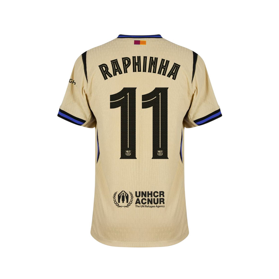 Vonkajší dres FC Barcelona 2025/26 z kolekcie Mamba prichádza v svetlo zlatej farbe s kontrastnými detailmi v čiernej a fialovej – oficiálne v odtieňoch Team Gold/Black/Persian Violet. Golier aj manžety sú inšpirované legendárnym dresom tímu NBA Lakers a nesú čierno-fialovo-čierny motív, ktorý pôsobí elegantne a ikonicky zároveň.