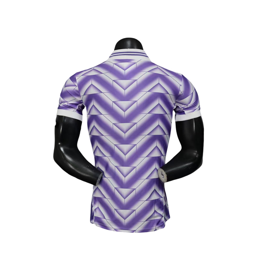 Tento Real Madrid LFSTLR dres v odtieňoch fialovej farby spája retro šarm a moderný mestský štýl. Inšpiráciou mu boli legendárne dresy Realu z deväťdesiatych rokov, ktoré sú dnes symbolom futbalovej elegancie a odvážneho dizajnu.