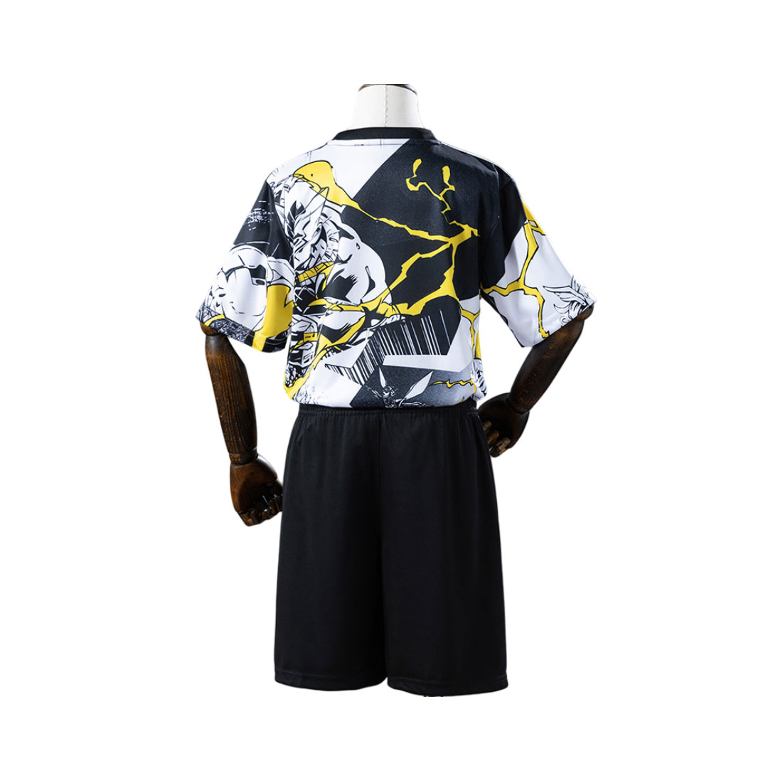 Detský futbalový set Real Madrid Avengers spája svet futbalu s dynamickým komiksovým dizajnom a vytvára výrazný vzhľad, ktorý si deti okamžite obľúbia. Horná časť je ladená do kontrastnej kombinácie čiernej, bielej a žltej, doplnenej o energické grafické motívy inšpirované superhrdinami.