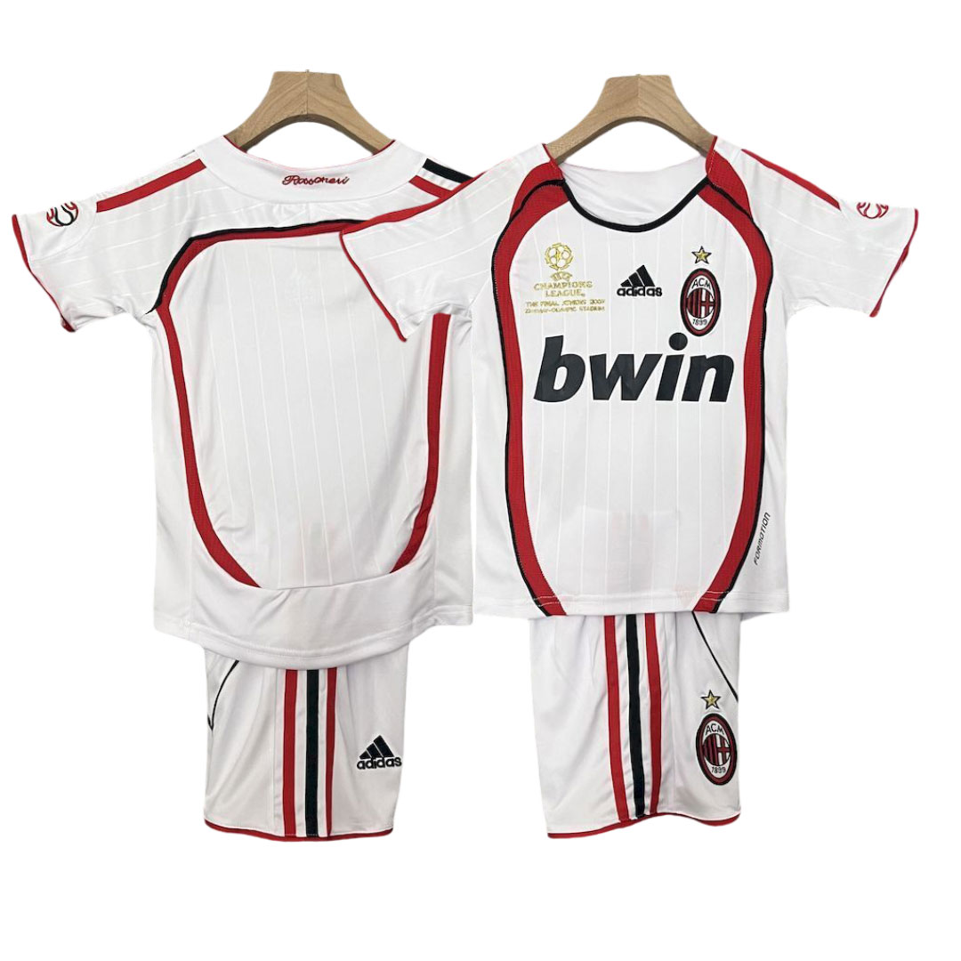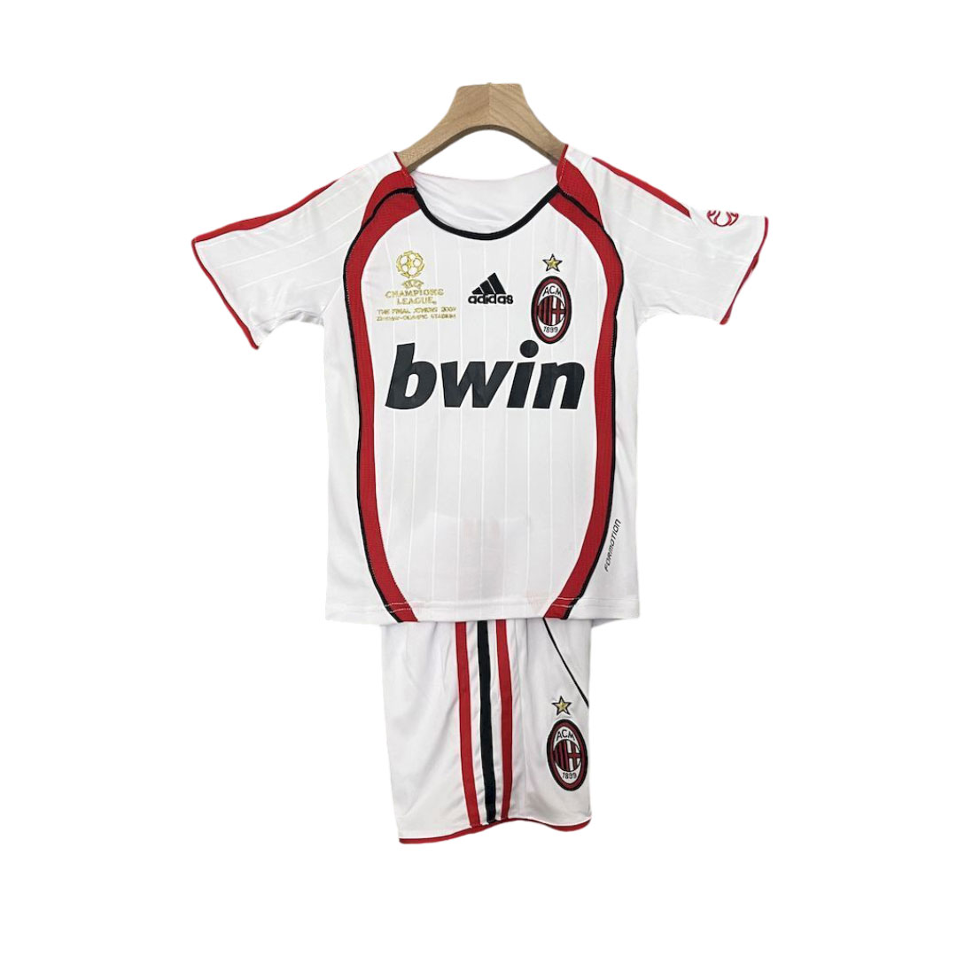 Tento retro detský hosťovský dres AC Milan zo sezóny 2006/07 pripomína jednu z najikonickejších európskych sezón klubu AC Milan, ktorá vyvrcholila nezabudnuteľným triumfom v Európe. Ide o dizajn, ktorý sa spája s veľkými zápasmi na ihriskách súperov a eleganciou typickou pre milánsky klub.
