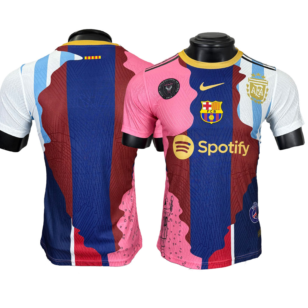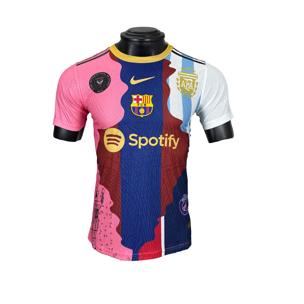 Táto špeciálna edícia Futbalové Dresy je poctou legende menom Lionel Messi. Spojením farieb a znakov štyroch tímov – FC Barcelona, Inter Miami, PSG a argentínskej reprezentácie – vznikol jedinečný dizajn, ktorý mapuje jeho výnimočnú kariéru. Dres je vizuálnym príbehom Messiho futbalovej cesty, od začiatkov v Barcelone až po súčasné pôsobenie v USA. Ideálny kúsok pre fanúšikov, ktorí chcú nosiť na sebe celú futbalovú históriu jedného z najväčších hráčov všetkých čias.