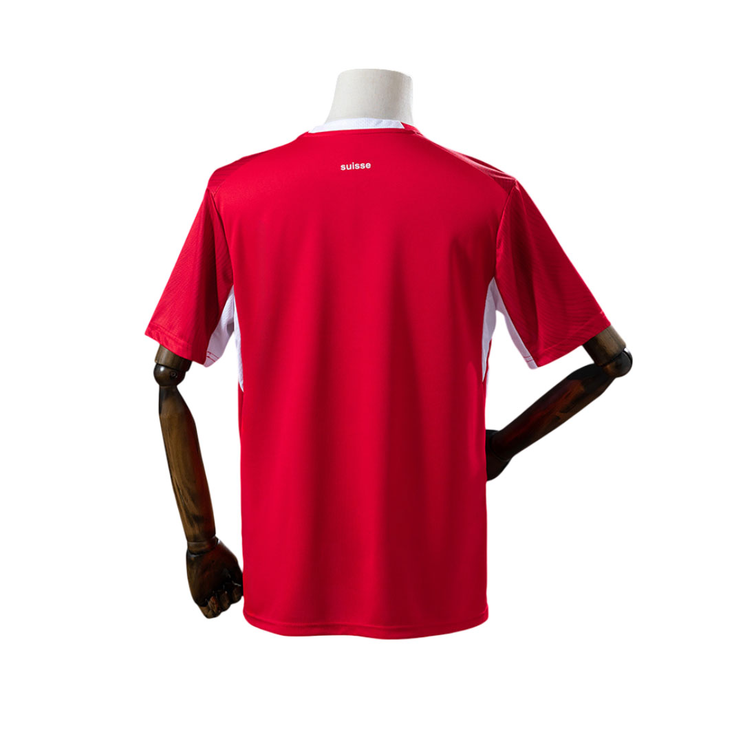 Pánsky domáci dres Švajčiarsko MS 2026 prichádza v tradičnej červenej farbe, ktorú dopĺňajú čisté biele detaily. Na prvý pohľad pôsobí klasicky, no skutočnú pozornosť priťahuje jeho celoplošný grafický vzor.