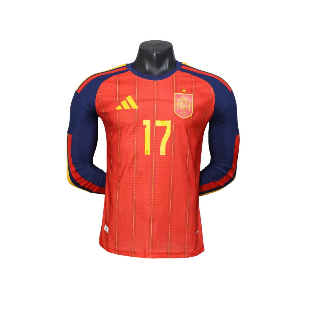 Tento Španielsko Domáci Dres MS 2026 s dlhým rukávom je už hotový s potlačou „Williams Jr 17“. Pri objednávke preto nemusíte nič dopĺňať ani zadávať – stačí si vybrať veľkosť